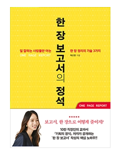 이 책은 업무 간소화를 외치며 한장 보고서를 외치는 요즘 기업들에 반해, 그런 한장 보고서를 어떻게 쓰는지 누구하나 가르쳐 주는 이가 없다는 생각에 저자가 자신의 경험, 노하우를 녹여 만든 책입니다. 기획의 정석 책보다 박신영 이사의 이력이 늘어난 것을 보니 그 뒤에 출간된 책이란 것을 알 수 있습니다.